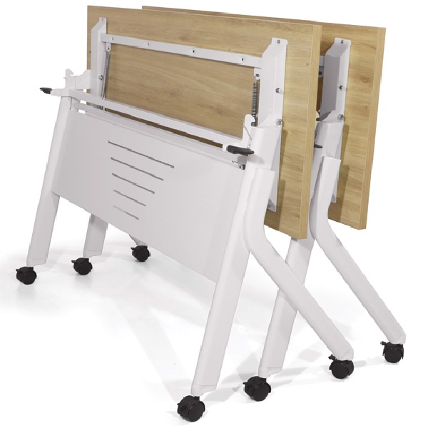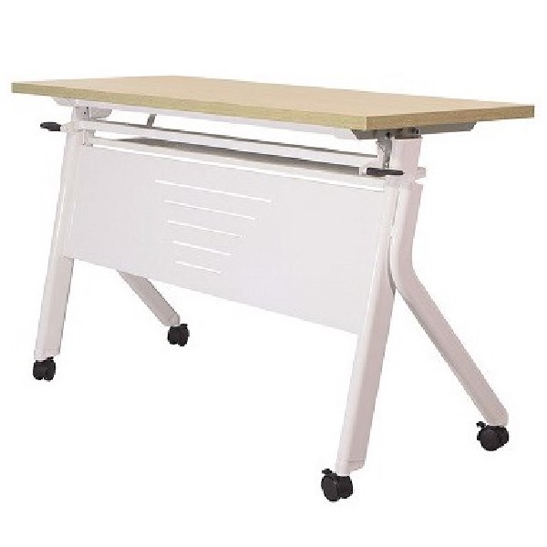 Chất liệu: Chân uốn sơn trắng. Có bánh xe. Mặt gỗ MFC có thể gấp