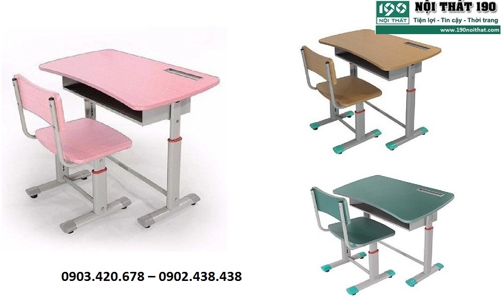 Những chiếc bàn học sinh 190 có ngăn chứa luôn nhận được sự yêu thích của các bạn trẻ. Ngăn kéo nhỏ được tích hợp giúp tài liệu được sắp xếp một cách gọn gàng nhất. Đồng thời trọng lượng đè lên mặt bàn cũng được giảm đi đến đáng kể.