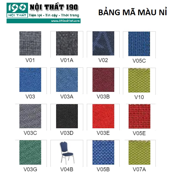 Màu sắc: Bảng màu vải tiêu chuẩn.