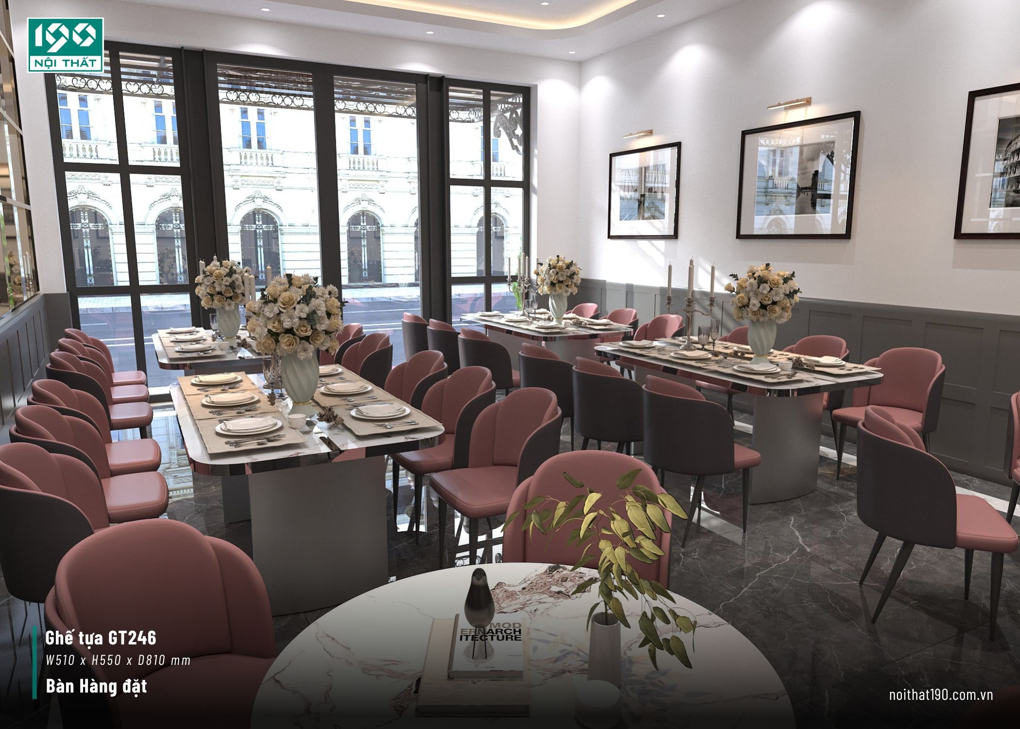 Mã sản phẩm: GT246 Màu sắc: Bảng màu tiêu chuẩn Kích thước: W510 x D550 x H810 mm Chất liệu: Ghế lưng 2 lớp, đệm ngồi bọc da công nghiệp, chân bằng sắt ống Ø38 tóp côn.