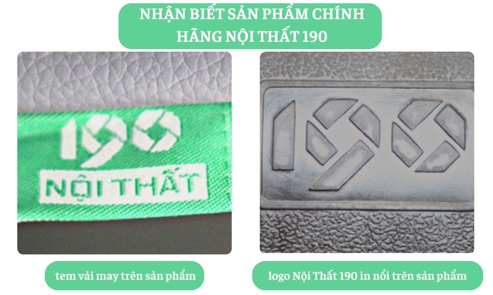 - Đối với ghế 190 chính hãng, sản phẩm có tem vải và logo Nội Thất 190 in nổi.